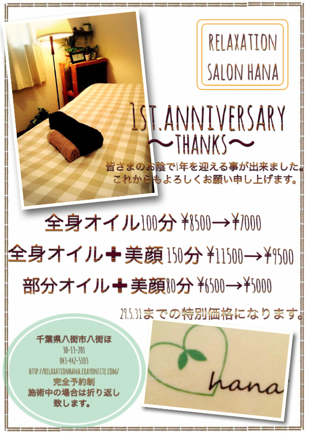 relaxation salon Hanaへようこそ